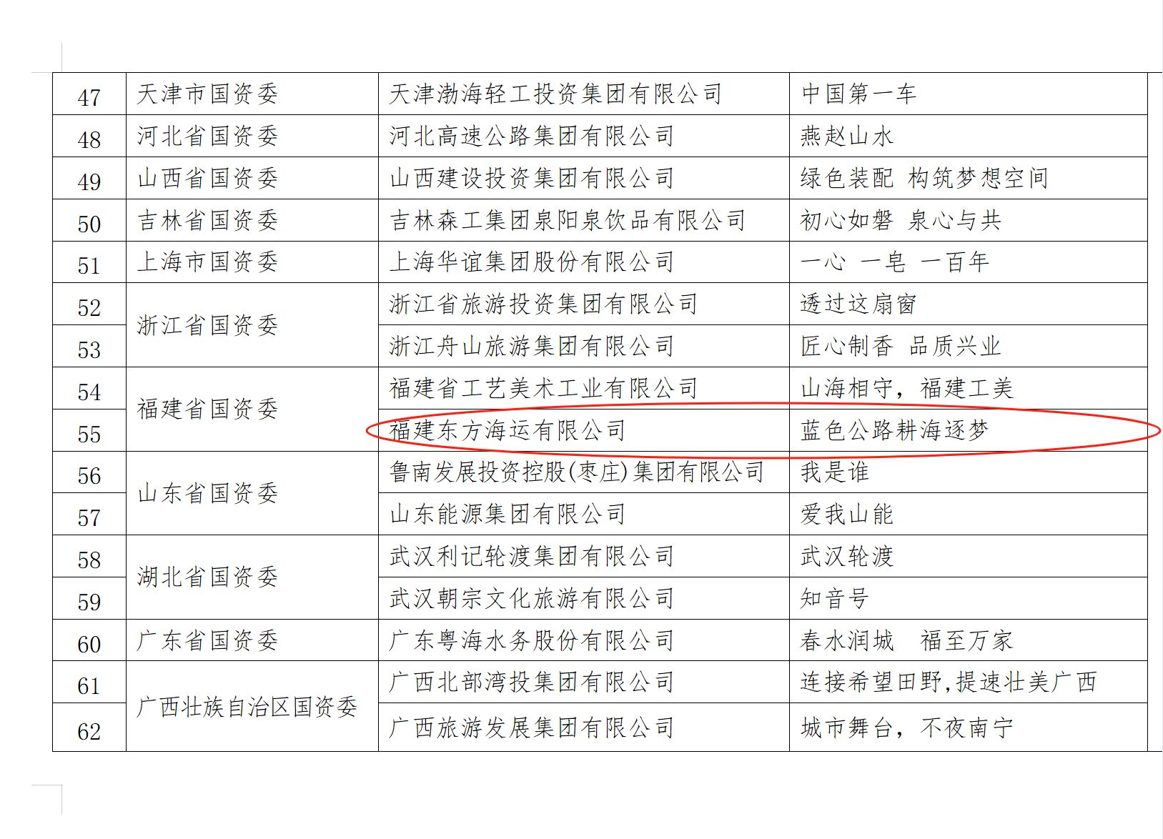 近日,国务院国资委办公厅发布《关于印发国有企业优秀品牌故事名单的通知》,福建东方海运《蓝色公路 耕海逐梦》品牌故事从众多优秀作品中脱颖而出,入选地方国资国企100个优秀品牌故事。