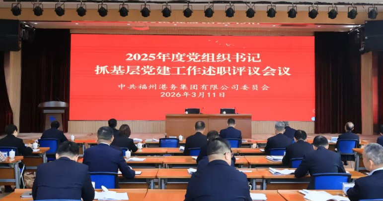 3月11日,福州港务集团党委召开2025年度党组织书记抓基层党建工作述职评议会,系统总结过去一年党建与业务深度融合的创新经验,深入剖析党建引领保障发展中的短板弱项,精准谋划新一年“党建强基、人才赋能、发展提质”的行动路径,以融合党建引领保障集团“十五五”精彩开局、行稳致远。 会议由集团党委书记、董事长高雨主持,福建港口集团党委派员莅临指导。 围绕2025年党建工作履职情况、存在的问题差距以及2026年工作思路等方面,可门港、港口工程、福港集箱、外理公司、泉港八方等5家单位党组织书记依次进行抓基层党建工作现场述职,其他二级单位党组织书记作书面述职。
