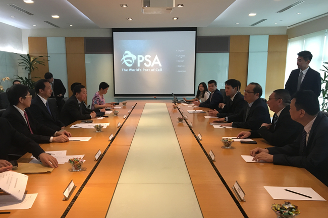 5月16日上午,福建省副省长李德金赴新加坡PSA国际港务集团总部进行公务访问,PSA东北亚区总裁陈家财热情接待,福建交通集团副总经理陈乐章、福州港务集团总经理陈剑钟作为PSA的长期合作伙伴以及福建省港口龙头企业代表,陪同访问。
