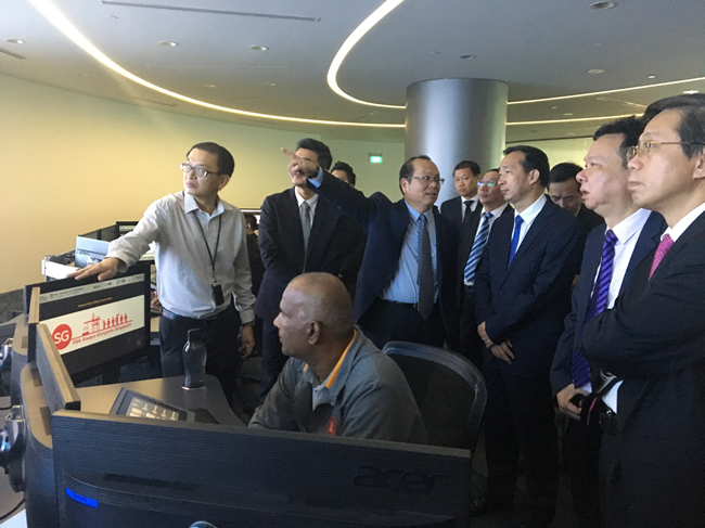 随后,李副省长一行前往PSA巴西班让码头办公楼对码头现场作业情况进行实地调研。陈家财总裁介绍自动化码头操作、管理经验及作业流程。李副省长高度评价了巴西班让港口的操作、管理模式,希望能够借鉴新加坡的成功模式与经验,逐步在江阴引入自动化,提高作业效率,提升港口容量。