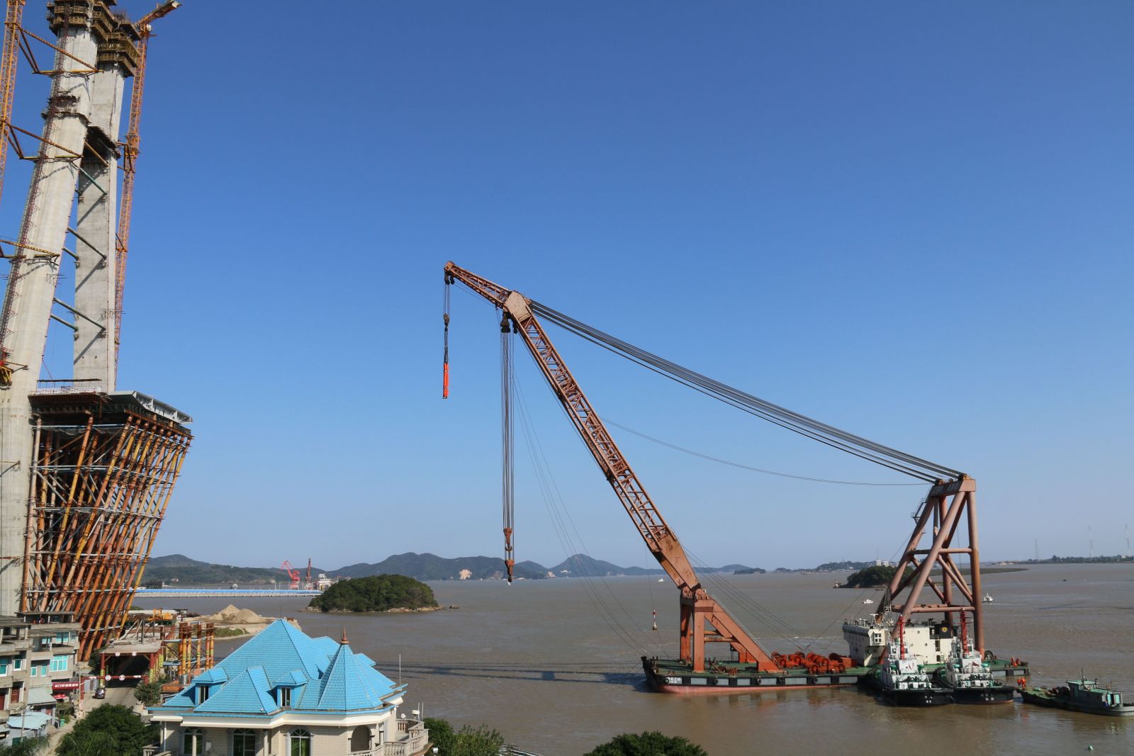 10月26日,福港拖轮所属安达、消拖3、福州港拖2号三艘大马力拖轮齐聚福州金牌门航道,协助浮吊“秦航工65”船进行抛锚、定位、起吊安装钢箱等工作,实现了福州港拖轮在此类型特殊作业上的零突破。