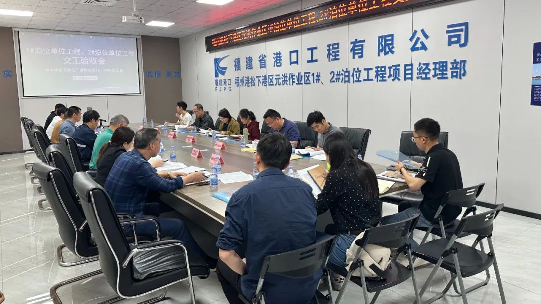 本次验收的码头平台采用高桩梁板结构,总长402 米,宽35米。引桥工程共3座,每座长 125m,宽度分别为 16m、16m 和 12m。项目自2023年5月开工至今,历经日夜奋战,承载无数期待。福清万业港口有限公司牵头各参建单位做好交工验收准备及交工材料梳理,为扎实推进此次项目交工验收工作提供了有力保障。验收会邀请了福建省福州港口发展中心、福建省福州港口发展中心水运工程质量安全技术站、福建省福州港口发展中心平潭港务站、福州新区元洪功能区管委会、福清市港口工作专班及各参建单位。交工验收核查组通过踏勘查验工程现场、查阅相关资料以及听取各参建单位的建设情况总结汇报等方式,对项目进行全面而细致的评审,一致同意通过交工验收。