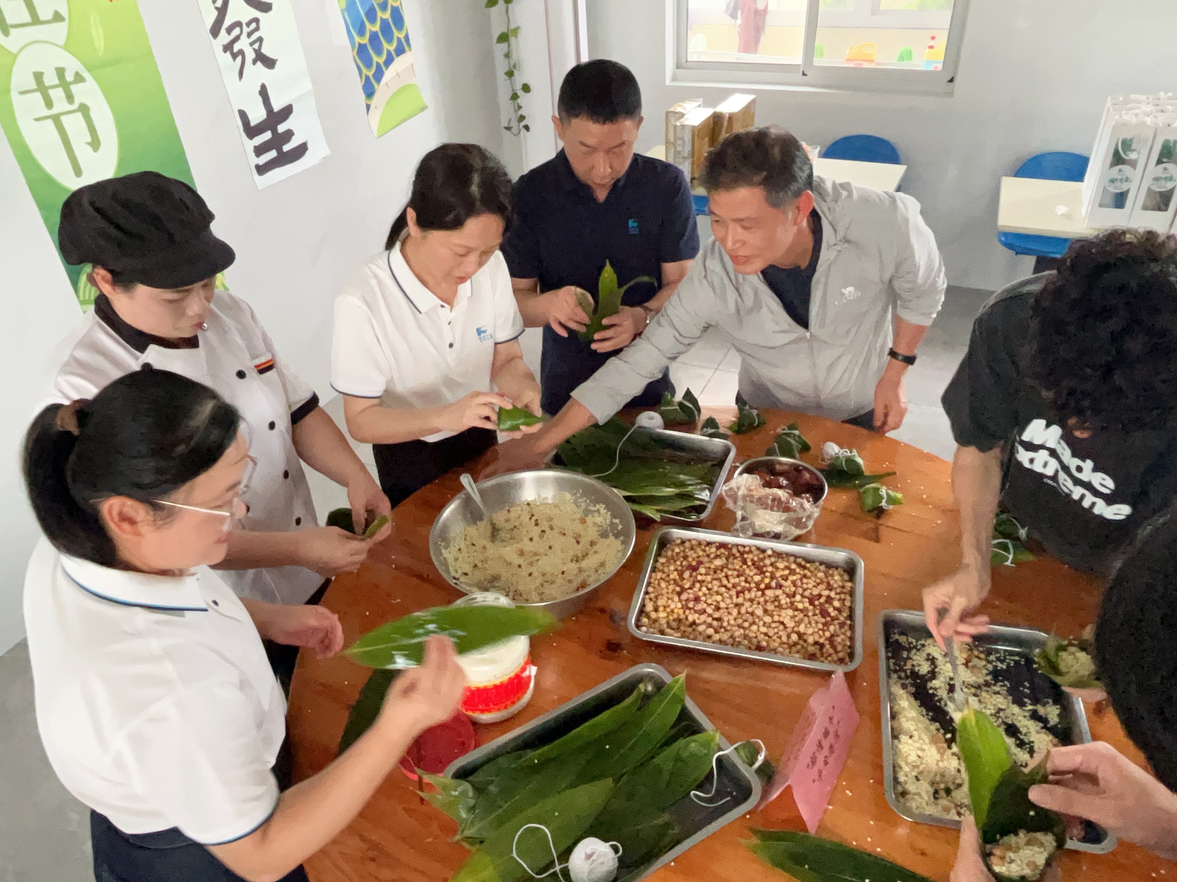 端午节前夕,福港罗源湾、福港台源携手开展“品味生活,传承文明——我们的节日·端午”主题活动。职工们齐聚食堂,粽米、粽叶、蜜枣等食材整齐摆放,一场别开生面的包粽子接力赛拉开序幕。活动现场特邀罗源县传统特色美食店技术能手手把手传授包粽子技能,大家分为3组协作包粽,折粽叶、填馅料、裹叶子、扎粽线,一道道工序有条不紊,洋溢着节日气氛和欢快的笑声。