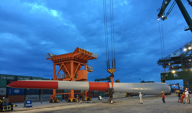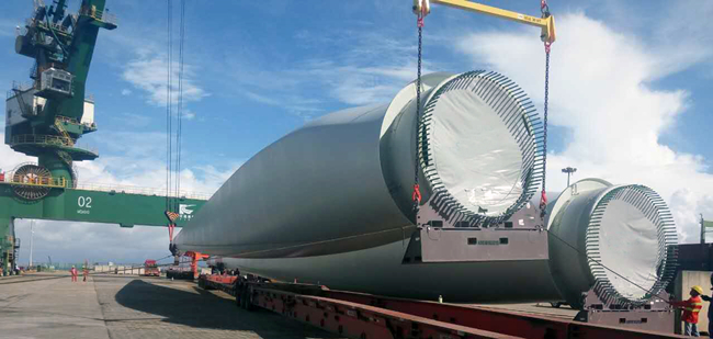 6月14日,由丹麦进口的国内最大海上风电机组在福州江阴港顺利完成卸船。此次接卸的16件超大件精密仪器为福清兴化湾海上风电场首套风机组件,单件风电机舱重达292.1吨,单片叶片长达75.394米。靠泊作业前,公司操作部、技术部、安质部成立了项目团队,提前会同船舶代理、理货、货主等外协单位,对作业方案流程、船舶安排、道路通行情况、大件车辆安排、交通组织、货物绑扎加固方案等进行反复考察论证,确保接卸万无一失,赢得了客户的肯定和赞赏。此次卸船任务的圆满完成,又一次彰显了江阴港重大件装卸实力。