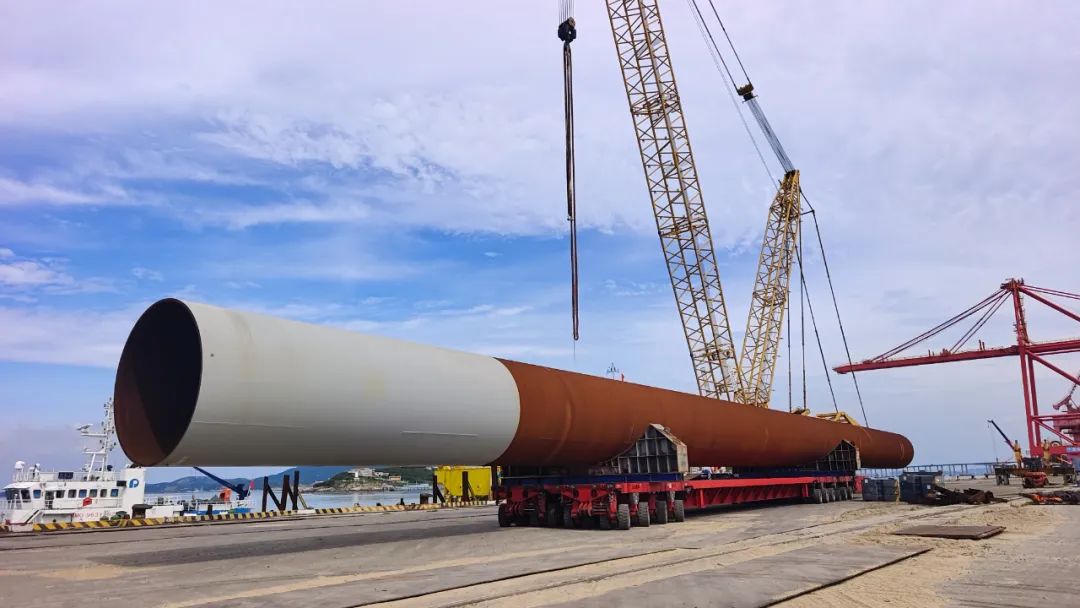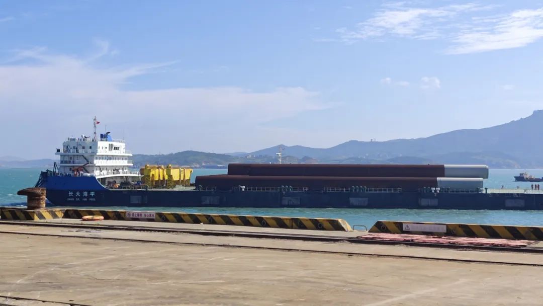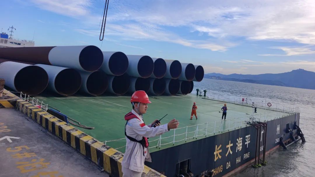 近日,福州外轮理货有限公司专班团队在平潭港区金井码头圆满完成“长大海平”轮卸载的一批大型风电基础桩理货作业。该批构件单根直径达3.5米,总重4447.04吨。