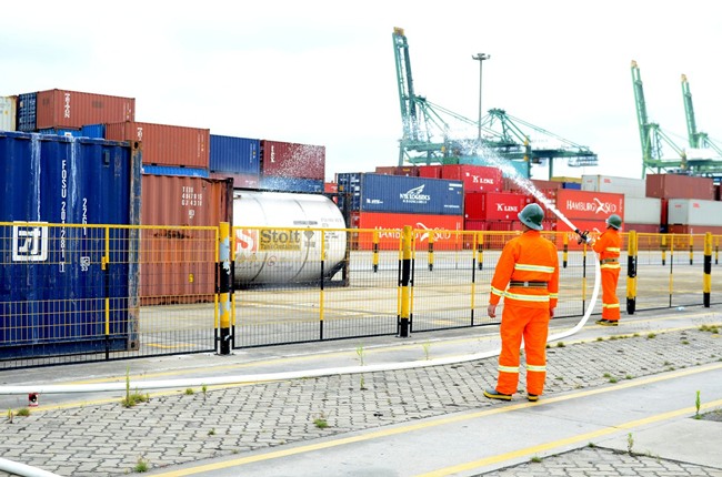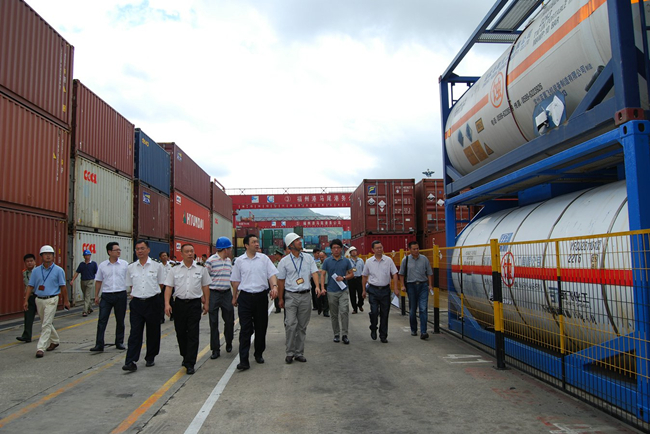 天津港8.12危险品仓库爆炸事故,引起了省市各级领导的高度重视。福州港务集团及所属福港集箱迅速行动开展危险品自查工作,再次盘查了港区危险品作业区内现有的危险品种类台帐及安全堆放,并对危险品区应急处置的消防设施、防护设备以及应急物资的完好情况进行了重点检查。福建省委常委、市委书记杨岳,福州市委副书记、市长杨益民,福建交通集团、福州港务集团以及港口管理部门、消防总队支队大队等领导分别先后莅临福港集箱青州港区和江阴港区,检查指导港区危险品安全生产工作,作出重要指示和专项工作要求。