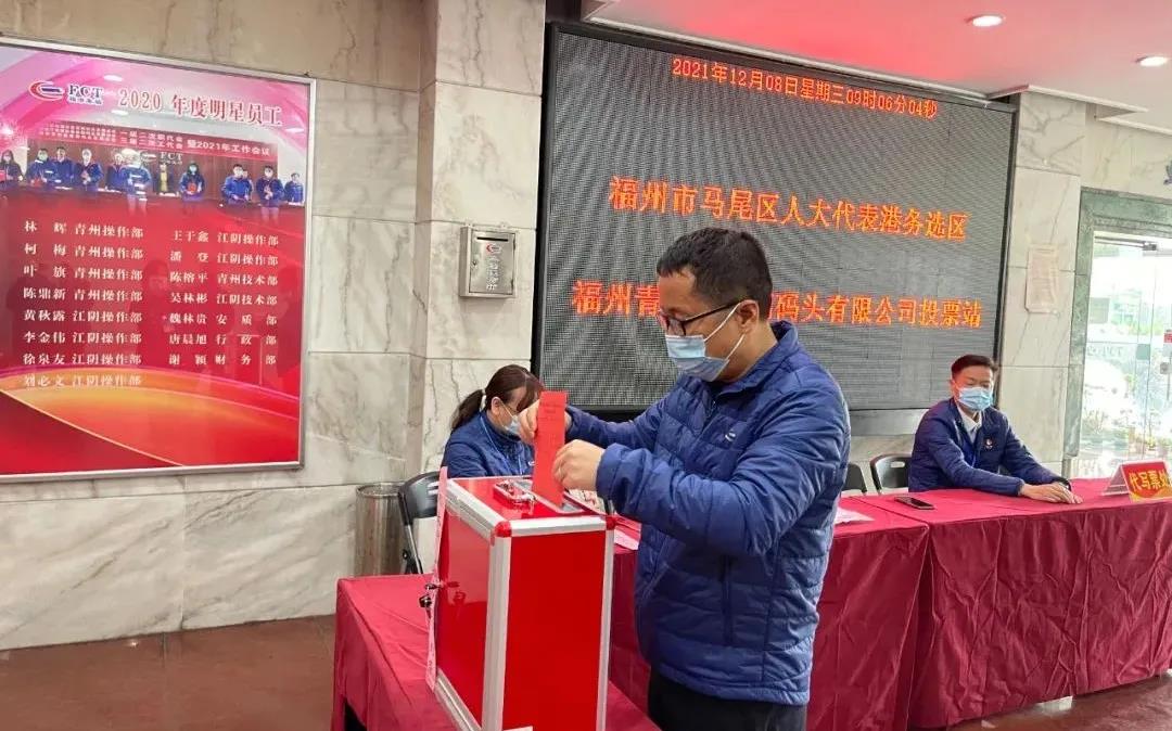 12月8日为福州市马尾区第十一届人大代表换届选举投票日,福州港务集团积极组织港务选区共1392位选民参加投票。通过集中计票并经马尾区选举委员会确认,陈剑钟同志当选为港务选区马尾区第十一届人民代表大会代表。