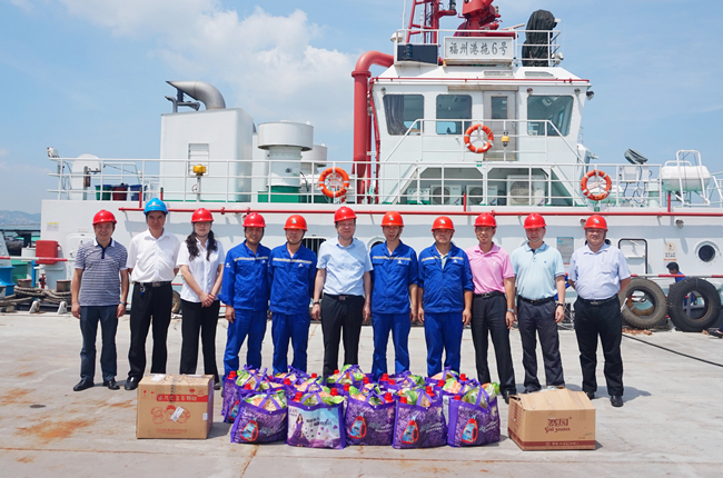 7月13日上午,陈剑钟总经理带队慰问福建荔兴拖轮有限公司一线船员,送上浓浓的高温关怀,开启了集团今年“夏送清凉”高温慰问活动。今年,高温酷暑天气持续,集团工会继续加大力度组织高温慰问活动,将覆盖集团所属全资、控股公司30多个有代表性的一线班组船舶、新造拖轮以及新成立的班组等,集团领导将陆续带队深入各港区、船舶等开展慰问,要求各基层单位也要开展相应的防暑降温工作,确保高温天气作业安全,把关心关爱职工工作落到实处。