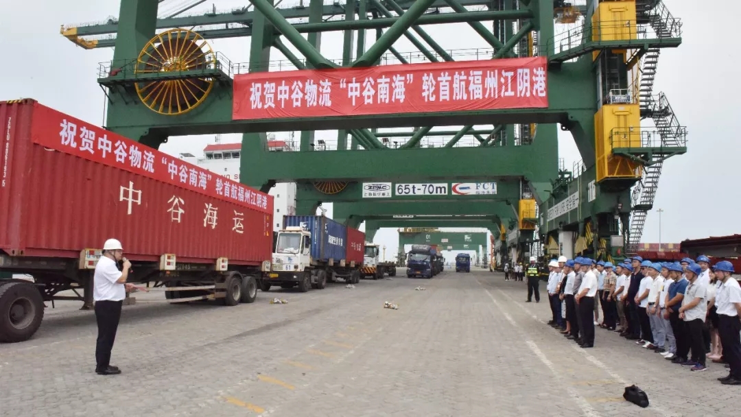 7月27日上午,中谷物流首条曼谷型集装箱船“中谷南海”轮在福州港江阴港区举行了隆重的首航仪式,中谷物流、福州港务集团及相关物流公司、货主企业等代表出席,共同见证了这一重要时刻。