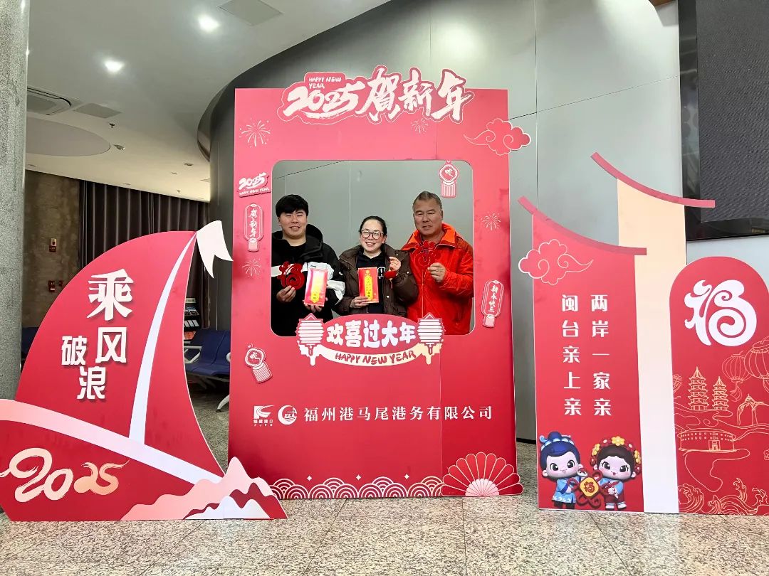 中国结、红灯笼、拍照打卡点、萌趣金蛇卡通形象、福文化形象IP“福宝”及主题海报……春运首日,福州港黄岐客运站人头攒动,围绕“福”文化,新年气息浓厚,处处洋溢着温馨的节日氛围。