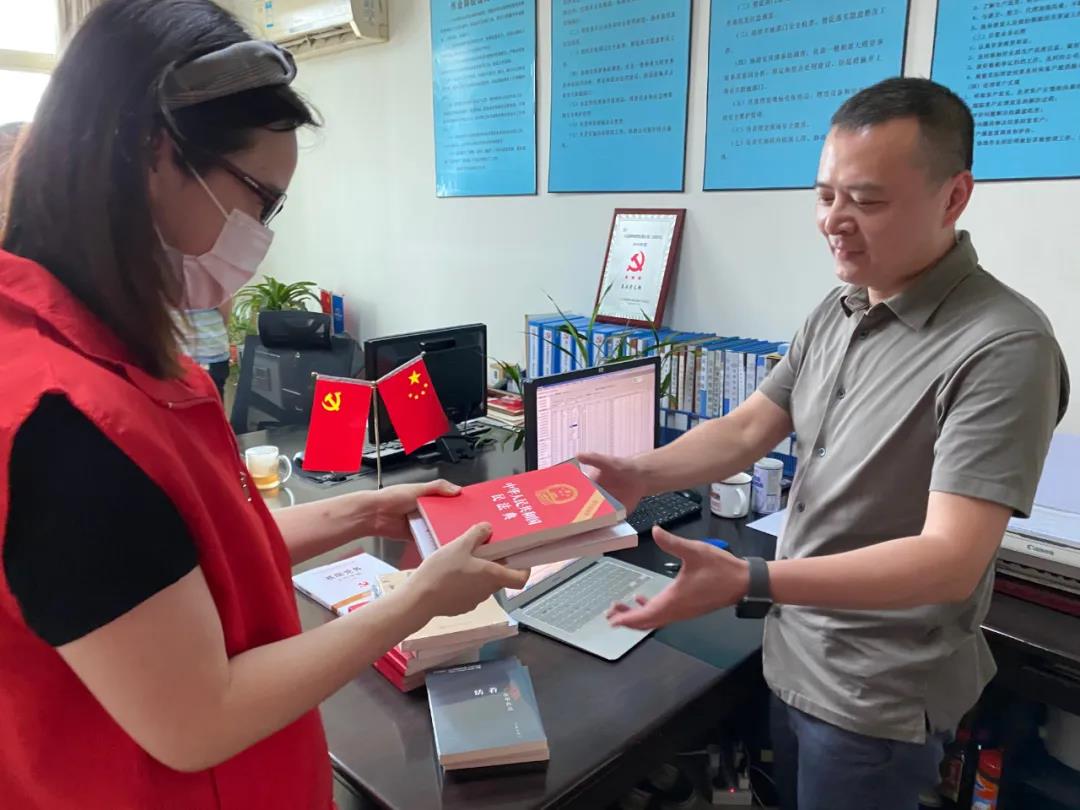 为深入推进学习型党组织建设,在基层党员中培育阅读学习、终身学习、学习工作一体化的学习理念,按照疫情期间“少聚集”“少接触”“少活动”等防控工作要求,7月1日,福州外轮理货有限公司党总支开展“浸润书香 悦读共享”迎七一读书活动。公司党员志愿者为正在上班的基层党员送上了自选教育书籍和《中华人民共和国民法典》,给基层党务工作者送去基层党务工作手册,既保证了党员学习生活的正常开展,又有效避免了人员聚集交叉感染风险。