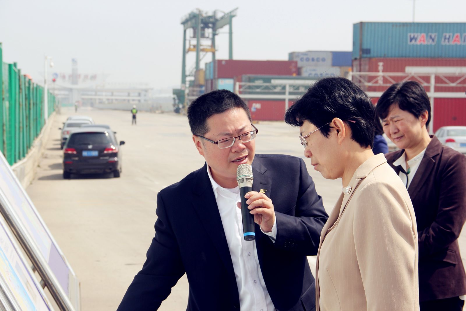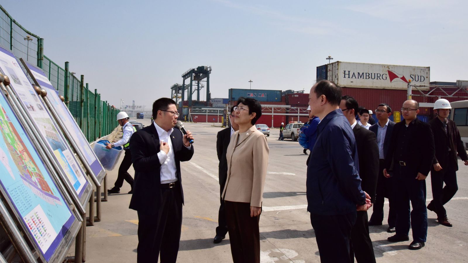 4月10日上午,福建省副省长隋军率调研组莅临福州港江阴港区,就福建自贸试验区福州片区整车进口及江阴港区工作情况进行考察调研。福建交通集团党委书记、董事长李兴湖陪同调研,福州港务集团总经理林少红、福港集箱党委书记陈强等陪同接待。