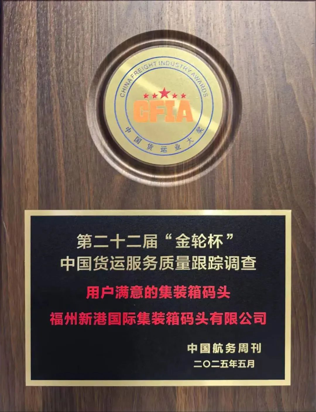 5月21日,在第二十二届“金轮杯”中国货运服务质量跟踪调查活动成果发布仪式上,福州新港国际集装箱码头有限公司(以下简称“福港集箱”)再次斩获“用户满意的集装箱码头”殊荣。这已是福港集箱第20次揽获此奖项,也是公司深耕港口服务领域,以 “五星服务” 打造行业服务标杆的实力印证。