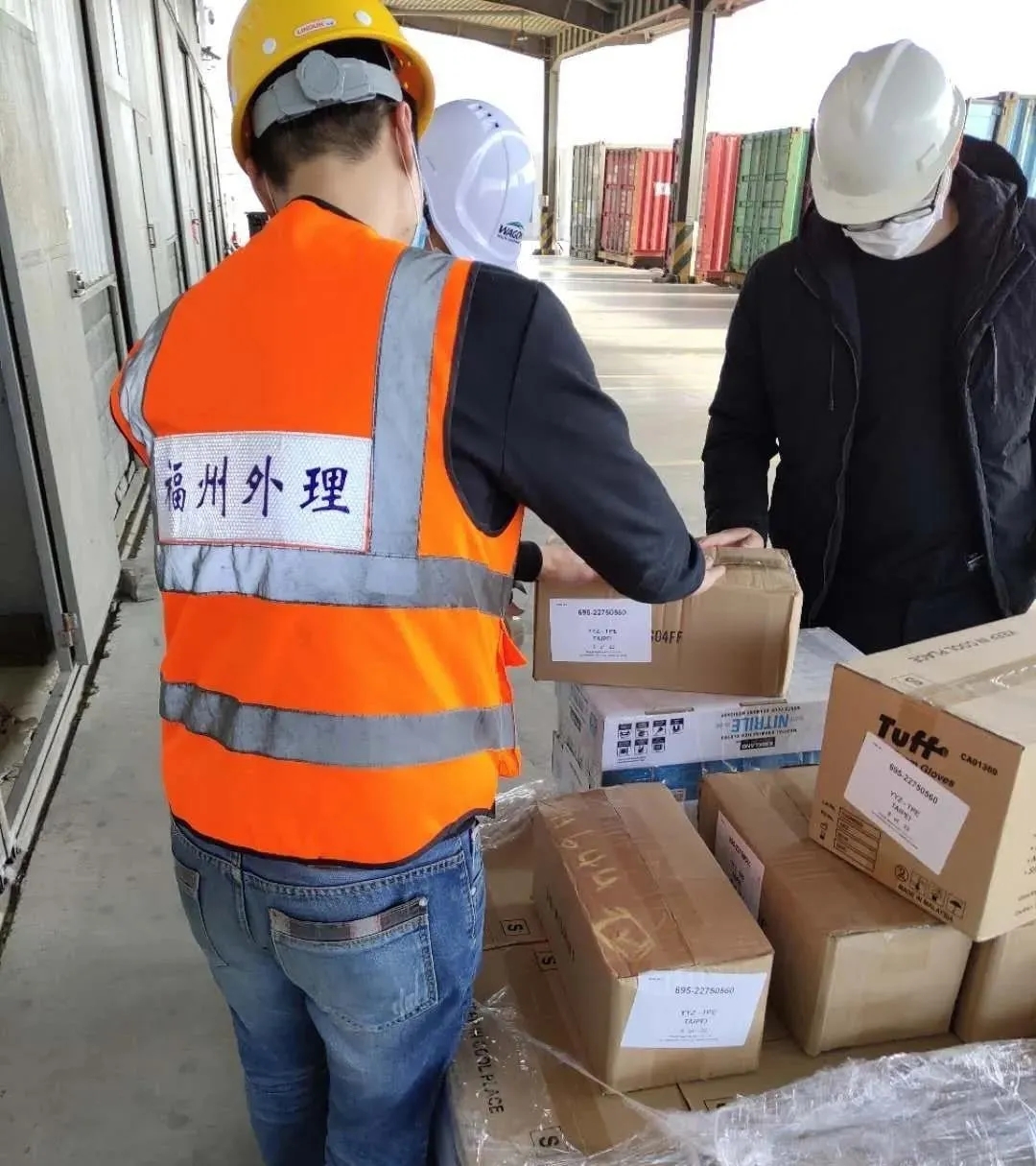 福州外理无偿协助防疫物资拆箱清点理货,确保防疫捐赠物资以最快的速度运达抗疫前线。