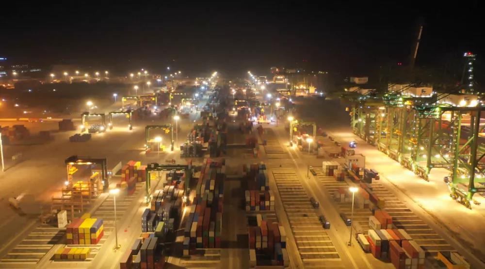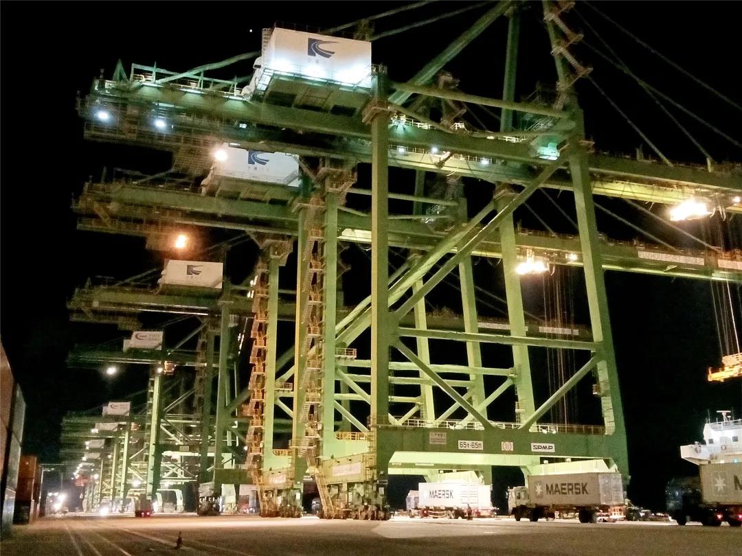 9月10日,褔港集箱江阴港区全线生产作业顺利恢复,1650米岸线上,14台岸桥一字排开,轮胎吊忙碌穿梭,昼夜不息,全面实现满产达产。