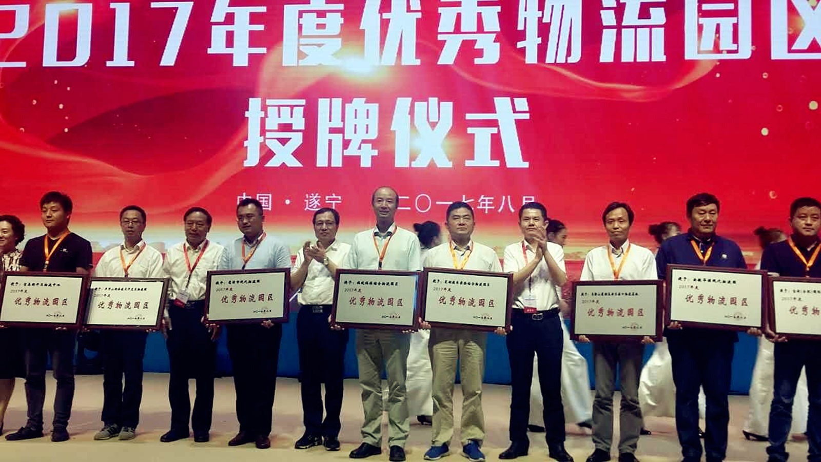 8月18日,福港综合物流园区再次被中国物流与采购联合会、中国物流学会授予“2017年度优秀物流园区”称号。福州港务集团副总经理郑明上台领奖。