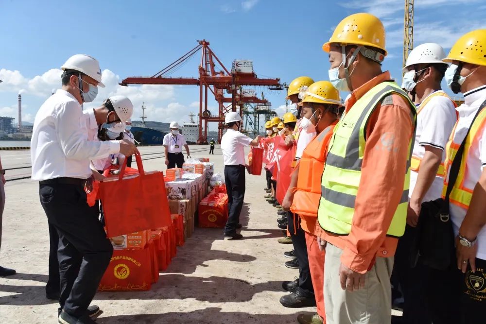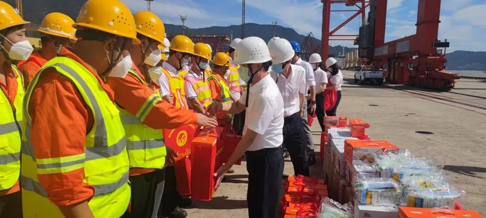 陈志平董事长在码头前沿为烈日下坚守一线的职工递上高温慰问品,代表福建港口集团对不畏高温、仍奋战在一线的港口职工表示赞赏和感谢,悉心叮嘱大家要劳逸结合,一定要把健康、安全和防疫放在第一位,以良好的精神状态优质高效地完成生产任务。他强调,要落实高温季节劳动保护规定,把疫情防控、安全生产和防暑降温工作落到实处,切实保障生产作业安全和员工身体健康,以优异成绩向党的二十大献礼。