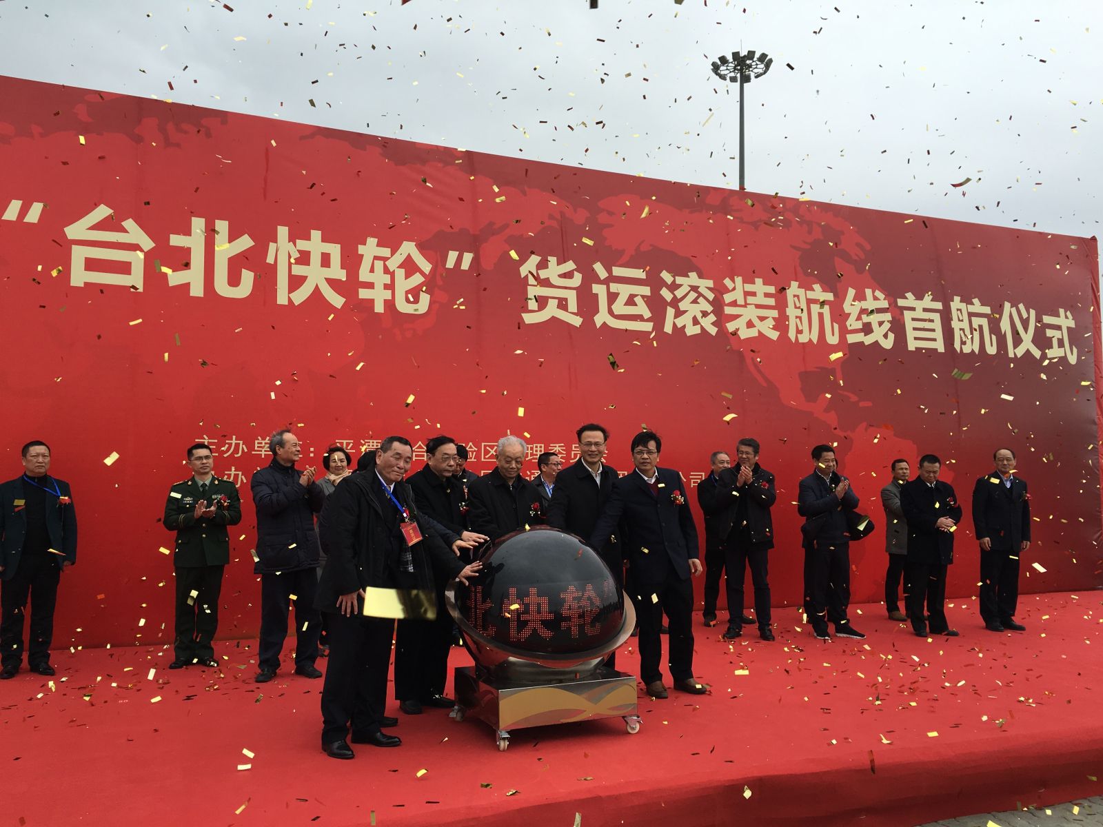 12月28日,平潭至台湾高速货运滚装航线首航仪式在福港平潭3#泊位隆重举行,十届全国人大常委会副委员长、两岸企业家峰会大陆方面副理事长盛华仁、平潭综合实验区党工委书记张兆明等领导出席了首航仪式。