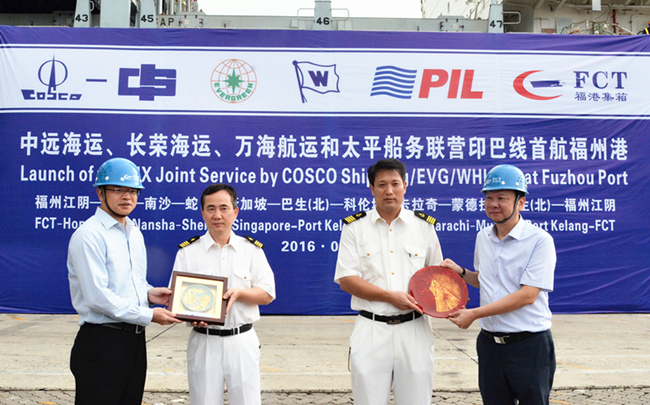 9月8日,印巴线集装箱船舶“中远圣保罗”轮首航靠泊江阴港区,该航线是由中远海运、长荣海运、万海航运和太平船务首次联合在福州港开辟的第一条印巴航线。该航线的开通,填补了福州直达印巴的航线空白,增强了福州港的“海向”辐射能力,为福州港由新兴市场不断增长带来的货量提供了新的、便捷的直达海运服务。