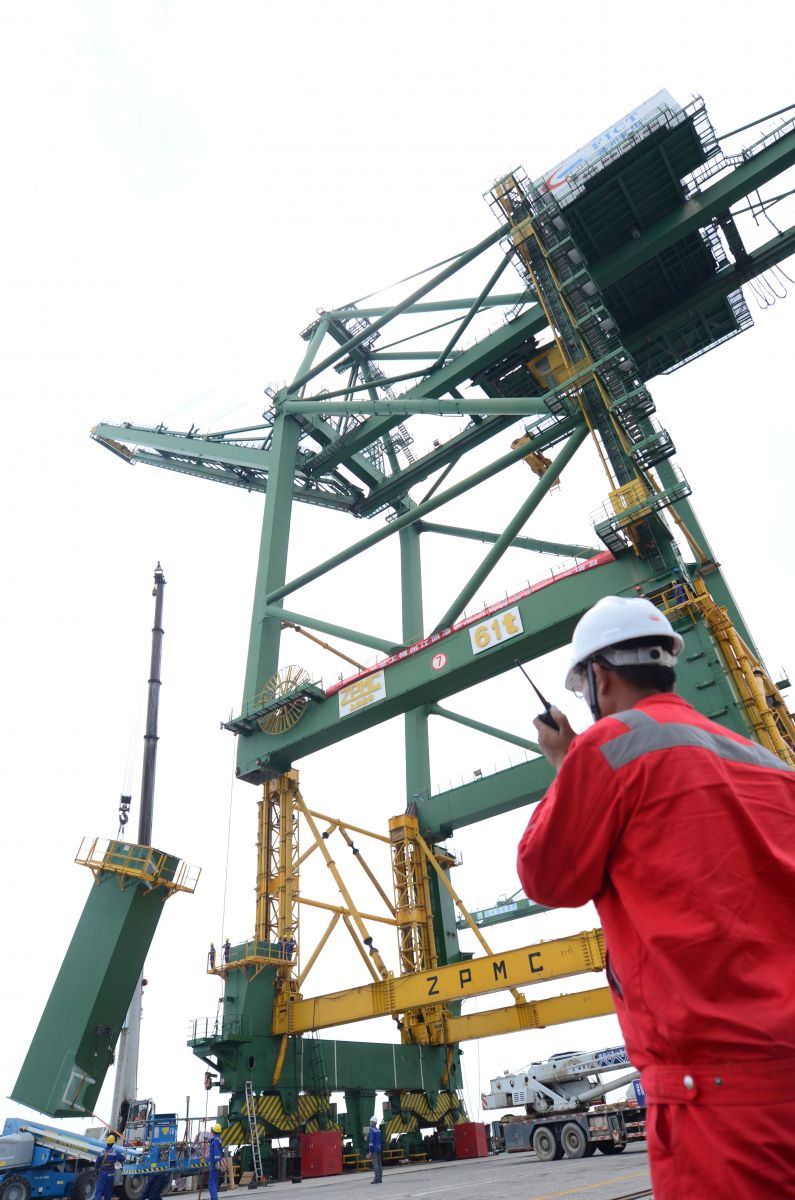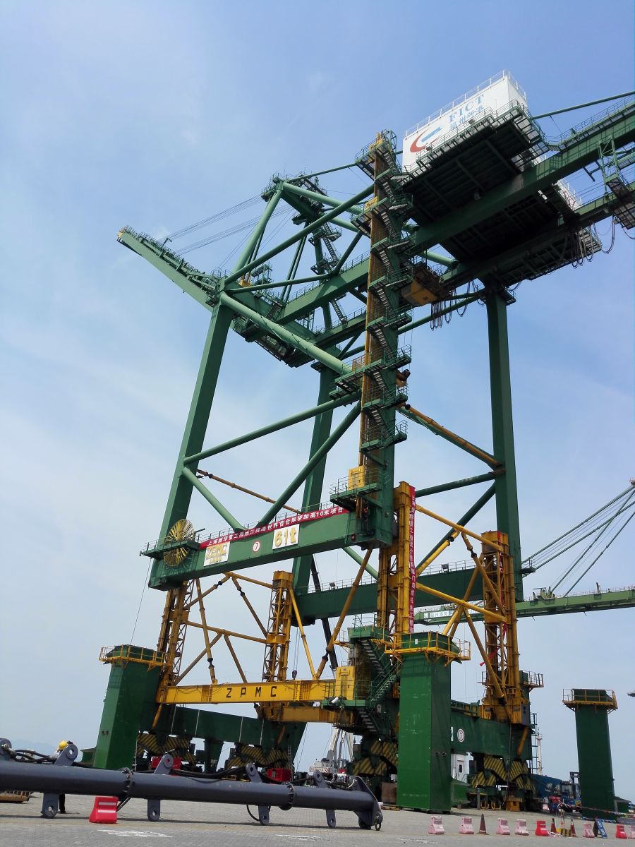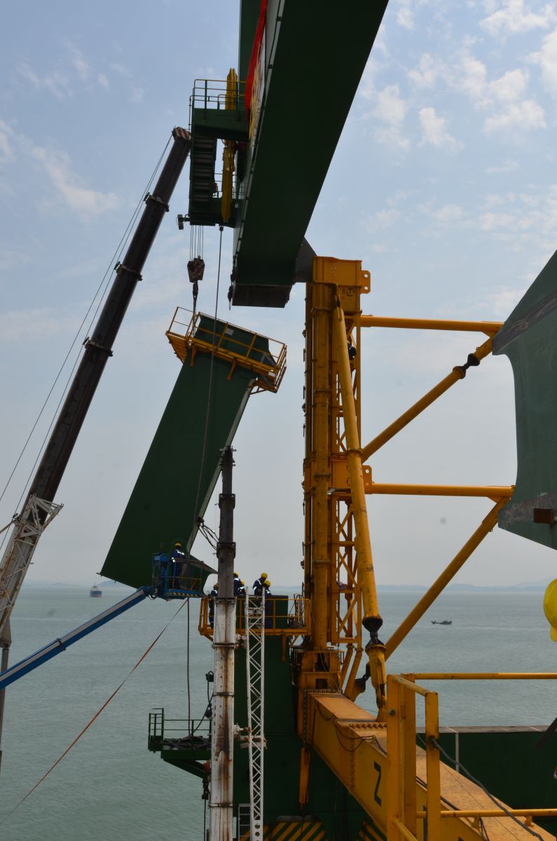 5月18日下午14点30分,历时5个半小时,福州港江阴港区顺利完成首台岸桥加高10米项目主体工程顶升、预拼装作业,此次福州港江阴港区7#岸桥加高,为目前全球提升高度最高的岸桥加高项目,改造后岸桥起升高度由原来的40米提升到了50米,可停靠接卸1.8万标箱集装箱船舶的港口。