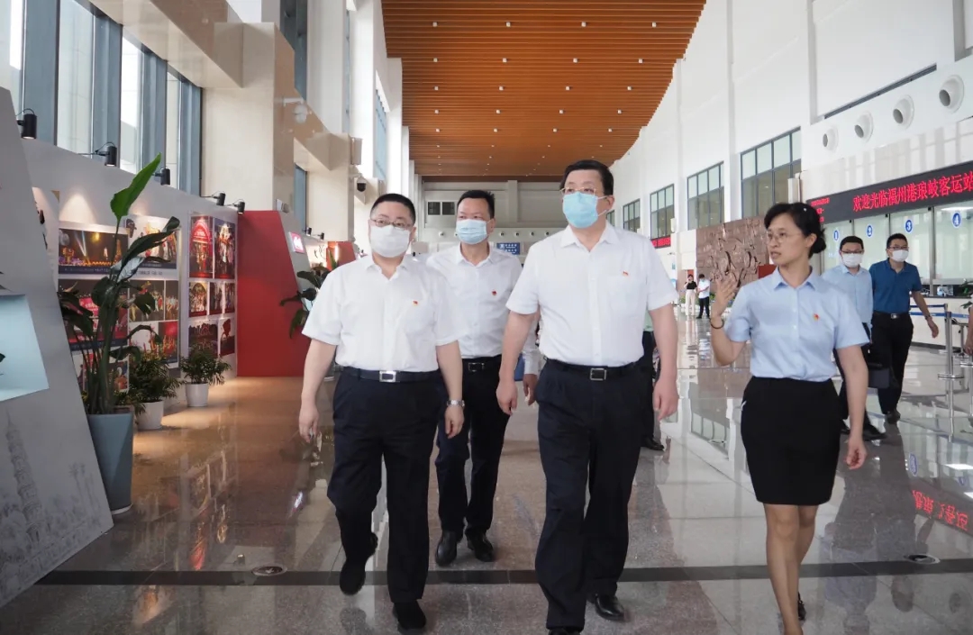 5月25日下午,福建省国资委党委书记、主任黄莼率省国资委相关部门负责同志一行,至福建交通集团所属福州港客运站,了解省委主要领导调研交通集团的指示要求落实情况,调研复工复产、疫情防控及安全生产工作。福建交通集团党委书记、董事长李兴湖,福州港务集团党委书记、董事长陈剑钟等陪同调研。