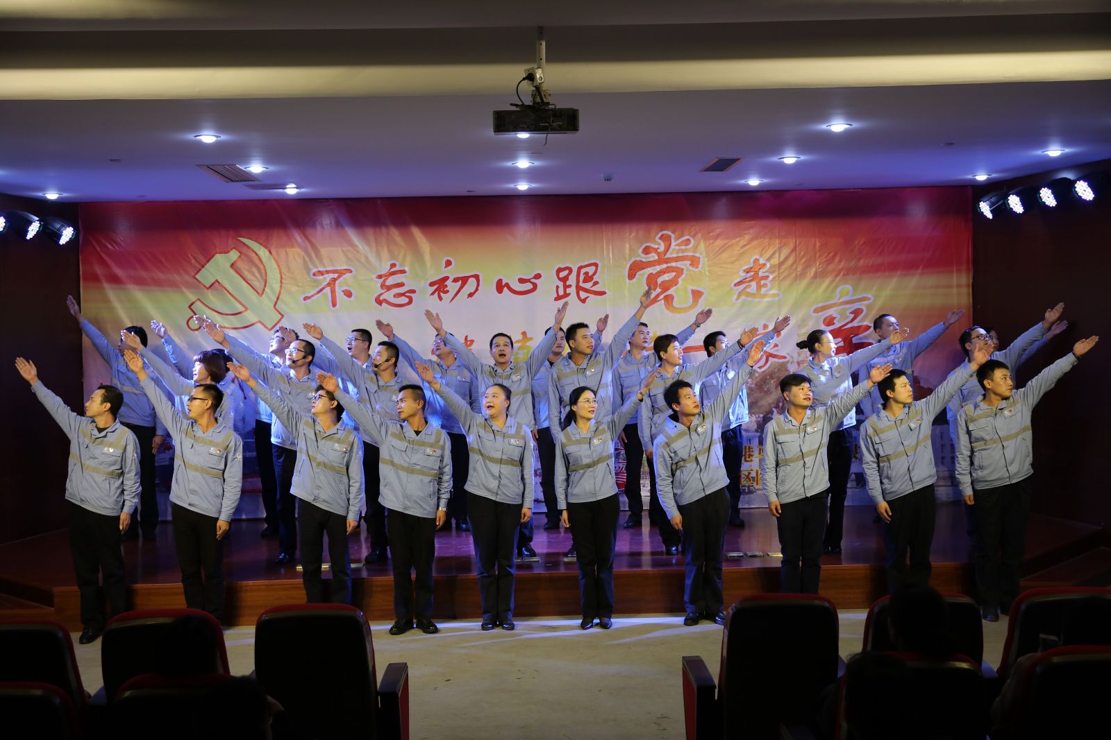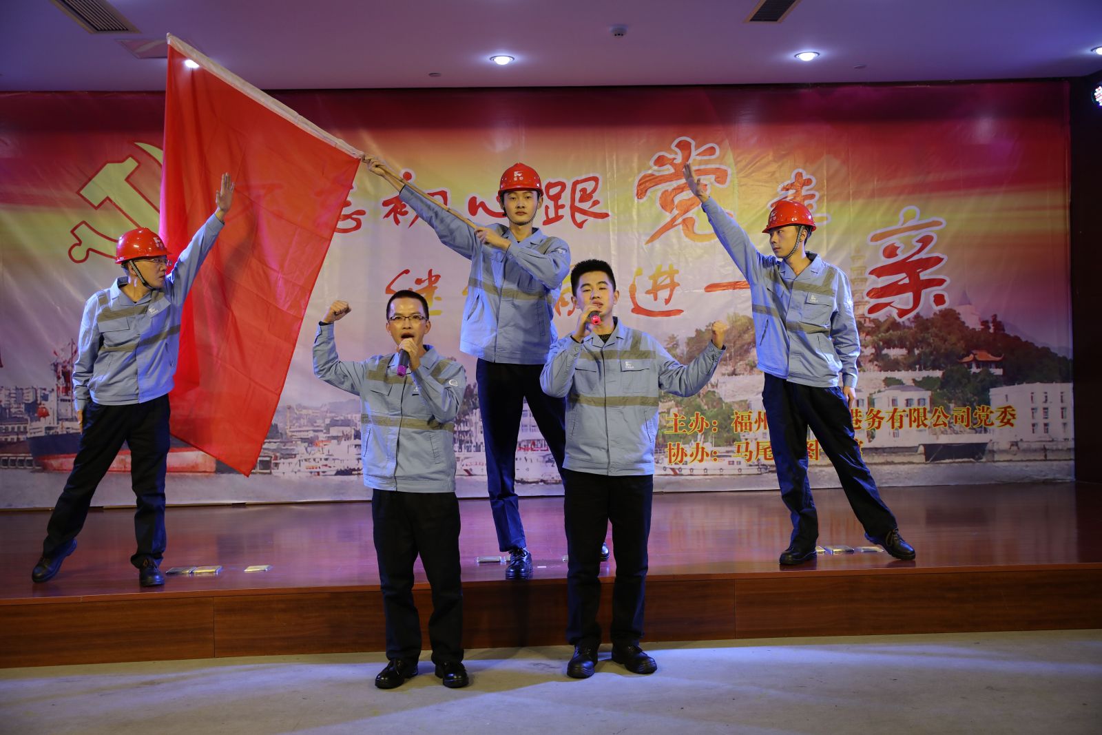 12月1日下午,福港马尾在马尾区图书馆报告厅举办了“不忘初心跟党走,继续前进一家亲”为主题的学习宣传贯彻党的十九大精神职工文艺汇演。福港马尾党委班子成员带领200余名干部职工欢聚一堂。港务集团党委书记、董事长陈剑钟,总经理林少红等以及兄弟单位党组织书记莅临演出。集团党委书记、董事长陈剑钟作了热情洋溢的致辞。