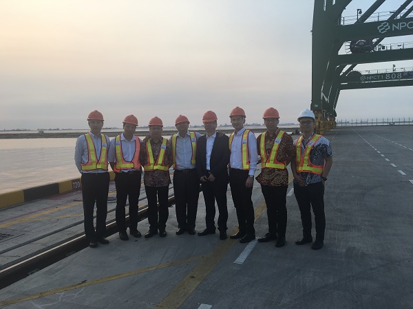 5月18日,福建交通集团陈乐章副总经理、福州港务集团陈剑钟总经理带团拜访了位于印尼雅加达新不碌港区的印尼雅加达NPCT新不碌集装箱码头。NPCT常务总裁魏献强热情接待了我方一行。据魏总裁介绍,NPCT于2016年7月开业,该港口位于雅加达New Priok新不碌港区,腹地主要产业为雅加达东部的汽车工业及西部的钢铁工业。新不碌港区2016年吞吐量为600万标箱,岸线总长850米,水深16米,20场桥,18岸桥。该码头拥有特种箱装卸能力,闸口具备一站式综合客户功能以及γ光检测功能。目前正在进行第二、三期项目的投标争取及用地填土,预计将建设28各泊位,并将建成一条新的临港车辆通道,连接新不碌一至三期项目,改善集疏运环境。