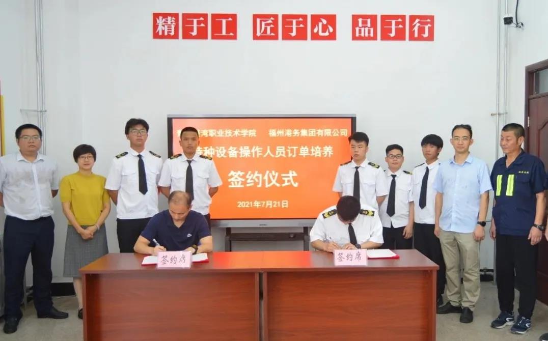 福州港务集团与青岛港湾学院于2021年1月份签订为期5年的特种设备操作人员订单式培养协议,就加强校企合作、探索专业院校和企业共同育人进行约定,是福州港务集团深化产教融合、推动双师制技术工人培养领域的一次重要尝试,也是福州港务集团技术工人队伍建设工作的重要组成部分。