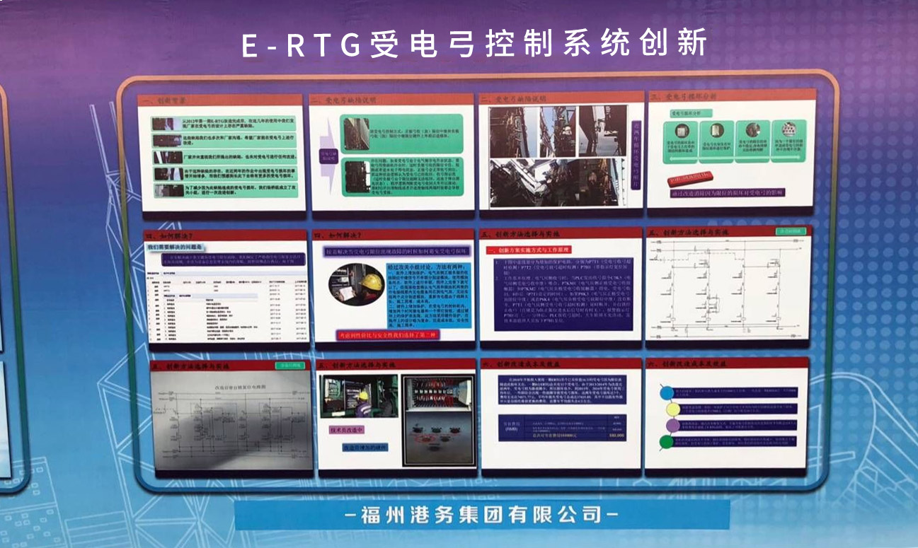 福港集箱“E-RTG受电弓控制系统创新项目”、“QC吊具锁销及油箱位置改良项目”和福港马尾的“轨道吊大车电缆卷盘系统改造项目”等三个技改创新项目,及福港拖轮劳模工作室创建经验,在交流营的港口科技长廊充分展示和交流。