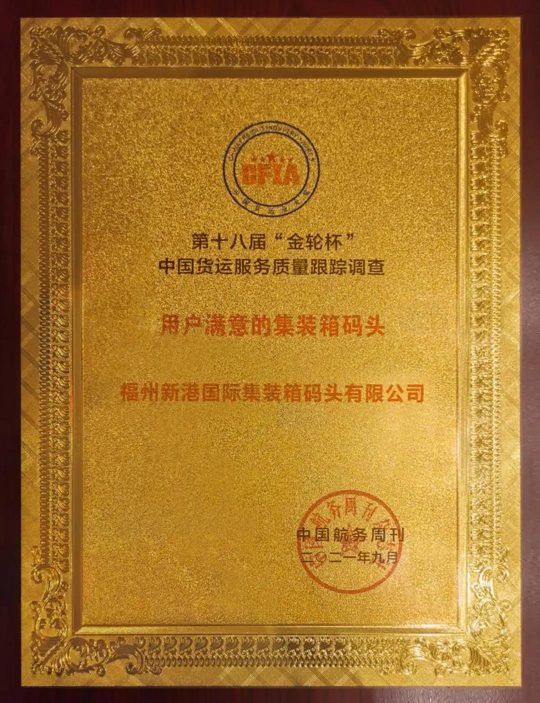 9月27日,由中国航务周刊主办的第十八届“中国货运服务质量跟踪调查活动”成果发布仪式上传来喜讯,福港集箱所属福州新港国际集装箱码头有限公司再获“用户满意的集装箱码头”称号,这是公司第16次获此殊荣。