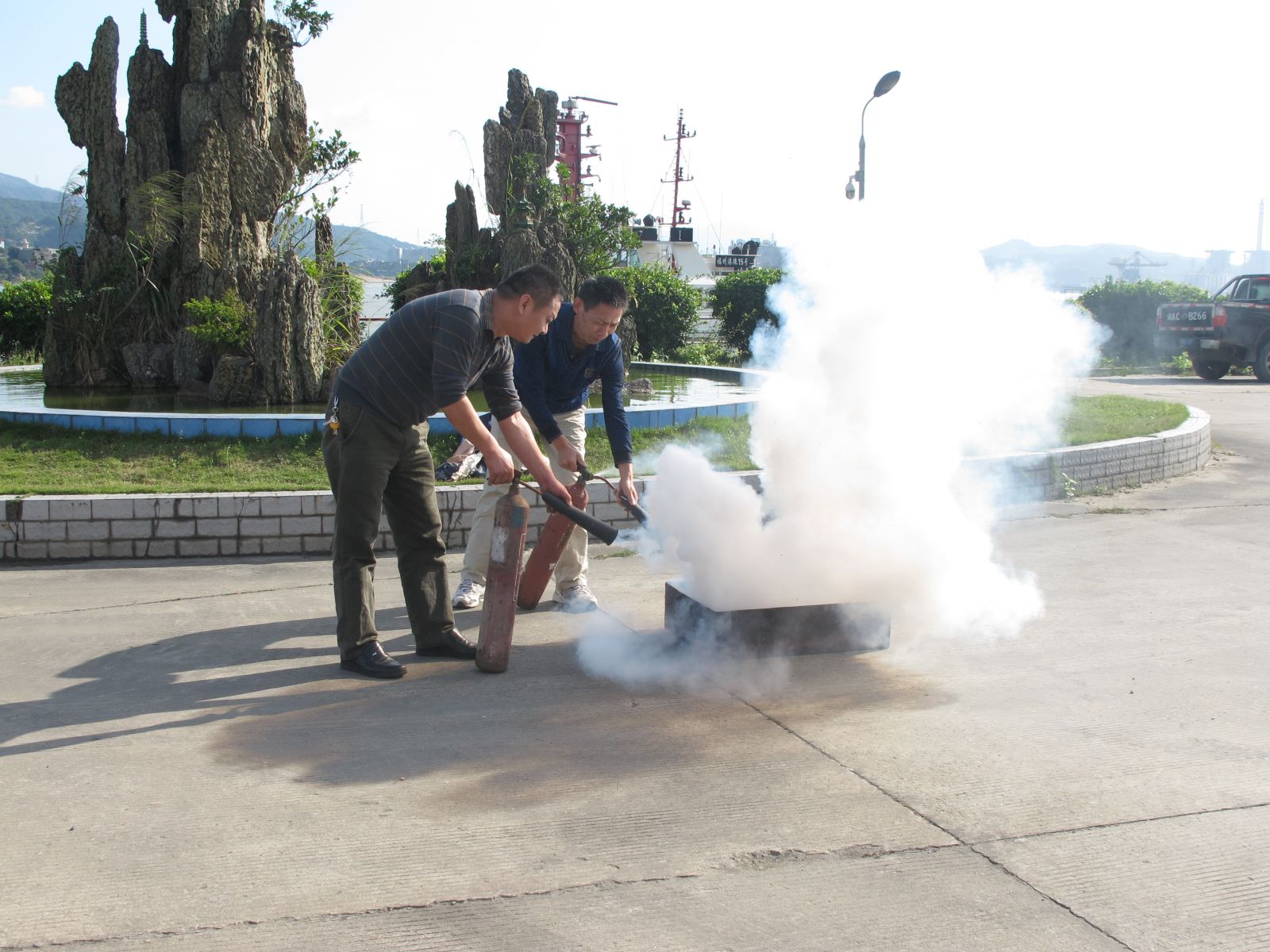 11月24日,福港拖轮公司在船务基地举行消防演练。此次演练背景为基地办公大楼突发火情,指挥人员对全体机关工作人员进行紧急疏散。在不足两分钟的时间里,被困人员快速有序的逃离火灾现场。