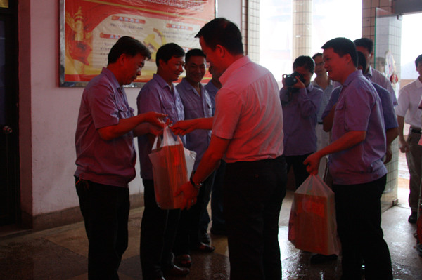 7月23日中午13时,今年第10号台风“麦德姆”即将登陆,福建省国资委邱志向副主任率队一行7人冒雨赶赴福州港务集团所属马尾港务公司督导防台工作,并向坚守在工作岗位的一线职工表示亲切慰问,送上了慰问品。