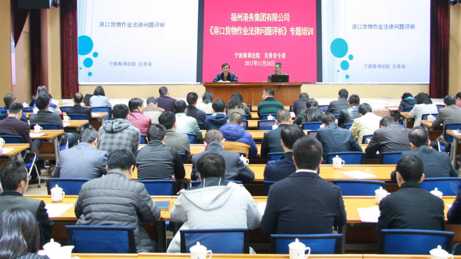 为践行十九大精神中全面依法治国,加强对法治中国建设统一领导相关要求,有效预防和化解港口生产经营中可能存在的法律风险和争议,提升员工在实务操作中的法律风险意识,集团于11月24日举办了一期《港口货物作业法律问题评析》专题讲座。集团领导,集团相关部室及所属公司中高层管理者、相关法务和业务人员共计105人参加了培训。