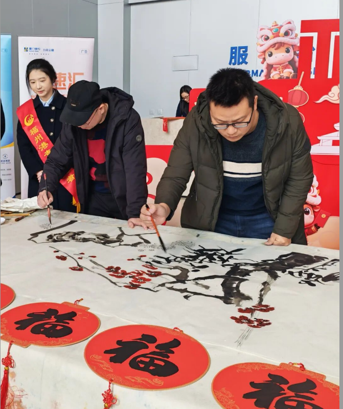 1月26日,“福进万家·策马启新”两岸迎春送福活动在琅岐客运站举办,多位知名书画家亲临现场挥毫泼墨,将对两岸同胞的美好祝愿融入笔墨。一幅幅寓意吉祥的春联、一个个遒劲有力的“福”字,带着墨香与暖意送到旅客手中。