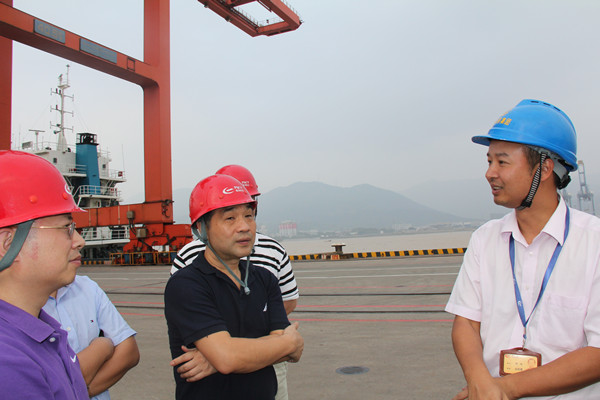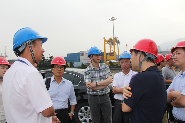 5月27日,香港贸发局首席经济师黄醒彪等一行莅临福港集箱青州港区。福州港务集团副总经理林建民、总经济师杨建森、集团总经理助理兼福港集箱总经理郑明在港区现场接待了香港贸发局贵宾一行。