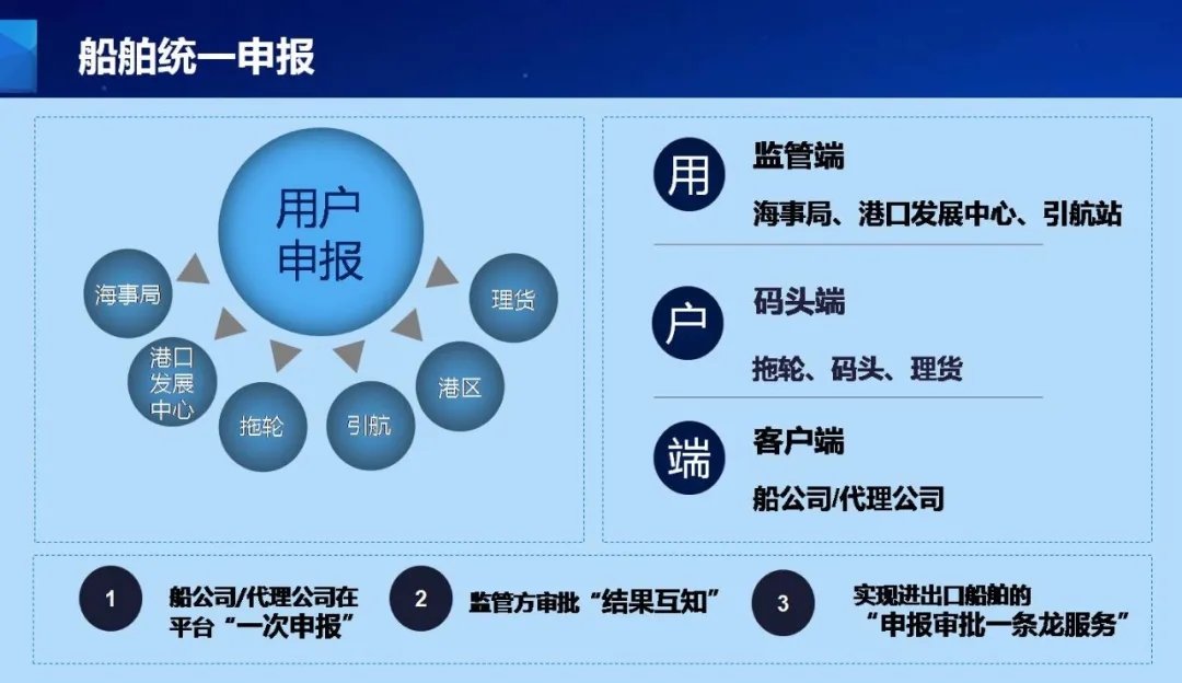 覆盖了全福州港的船舶进出港申报监管服务,实现了船舶进出港一次性申报、信息共享、结果互知、实现了船公司、代理与码头企业、海事,、港口及引航的申报审批一站式服务,彻底解决线下申报船舶进出港的弊端,降低了船东、代理与港区、监管单位的沟通成本,大大缩短了船舶进出港申报的时间。