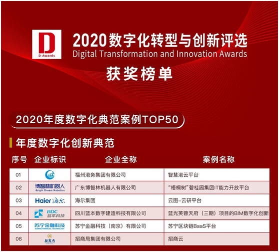 日前“2020-2021中国数字化年会”在成都盛大召开,会议以“点亮数字未来”为主题,汇聚了数字科技领域产、学、研、用等领先机构的新数字化变革先锋力量,共同探讨产业数字化与数字产业化的创新发展之路。会上揭晓了“2020年度中国数字化转型与创新评选”获奖项目,福州港务集团智慧港云平台凭借在港口物流领域数字化转型上优秀的创新能力与突出成果,荣获“年度数字化创新典范”奖,同时荣登“2020年度数字化典型案例TOP50榜单”。
