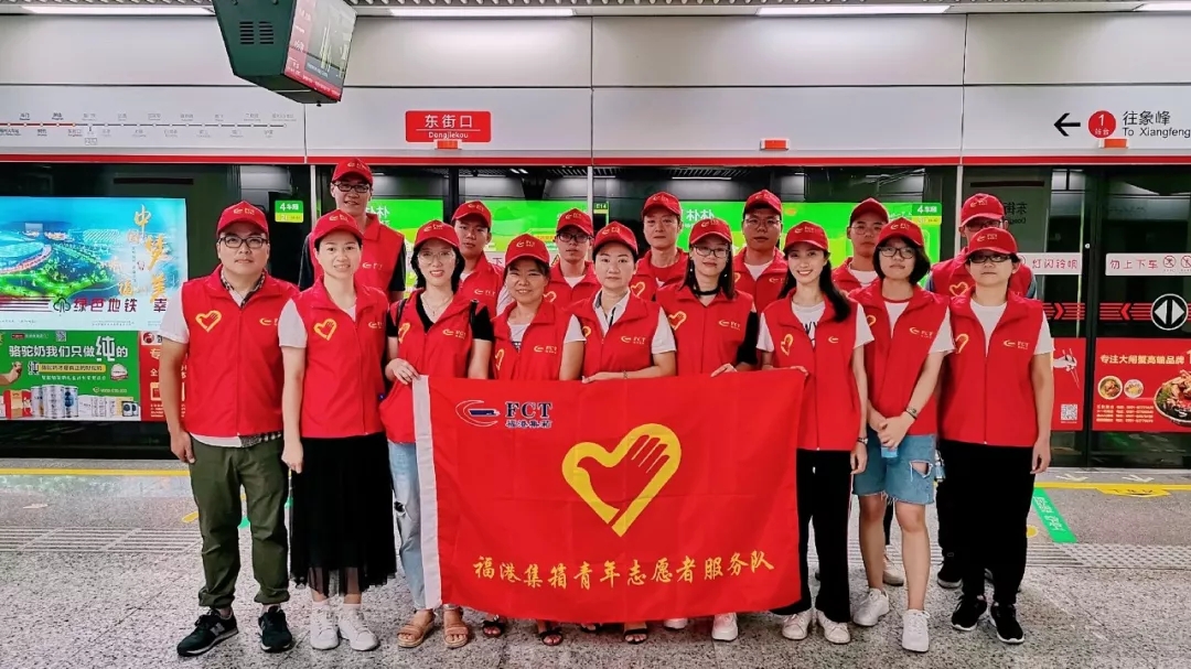 8月18日上午九点,福港集箱青年志愿者服务队齐聚在福州市轨道交通1号线东街口站,开始进行地铁志愿服务活动。