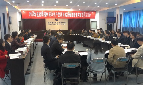 12月25日上午,福州港口管理局和福州港务集团有限公司在港务集团六楼会议室召开2015年实施的省级航运奖励政策以及2016年实施的市级港口生产发展补贴政策宣贯会。福州港主要集装箱码头公司、大型散货中转码头公司、国际航线船公司、支线船公司、主要生产厂家、海铁联运业务企业、船舶代理公司、理货公司、拖轮公司等企业主要负责人45人参加了会议。