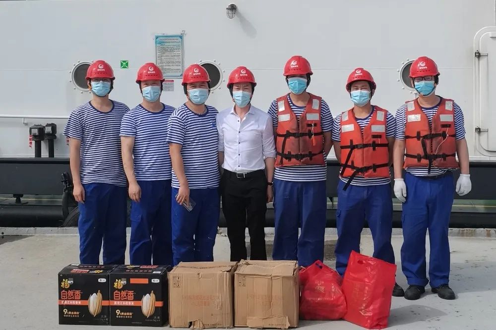 自宁德疫情爆发以来,福港拖轮派驻宁德港区船员不计个人得失,勇于担当履职,坚守在水上抗疫一线,防疫生产两手抓,以实际行动诠释新时代福港人本色。 4月25日,宁德办事处负责人结束隔离后第一时间赶赴宁德港区代表公司领导看望慰问一线船员,为船员送上食品、洗护用品等慰问品。