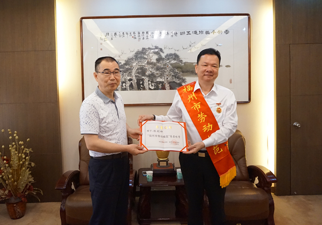 我集团总经理陈剑钟同志被福州市人民政府授予福州市第三十五届劳动模范光荣称号。