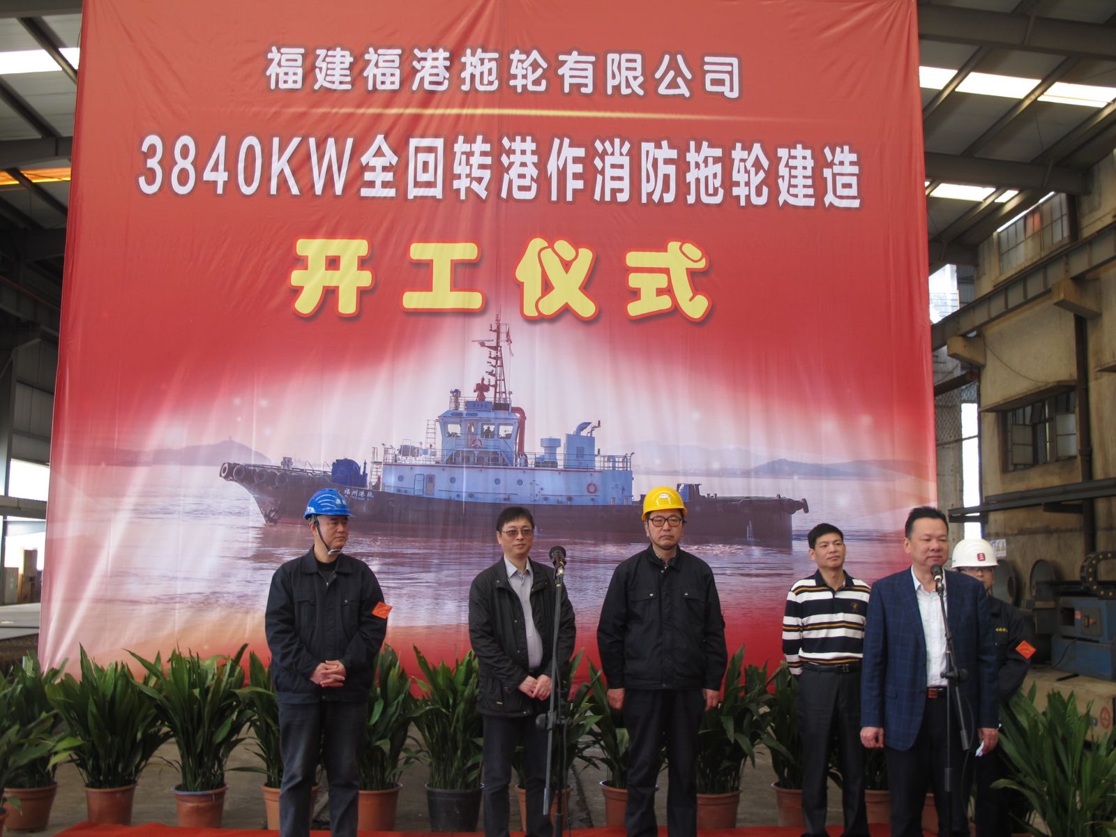 3月3日上午,浙江凯灵船厂为福建福港拖轮有限公司建造的一艘3840KW带消防功能全回转拖轮在凯灵船厂顺利开工。福州港务集团有限公司总经理陈剑钟、副总经理林建民、福建福港拖轮有限公司总经理张丹波、浙江凯灵船厂厂长田红一等相关领导出席了开工仪式。