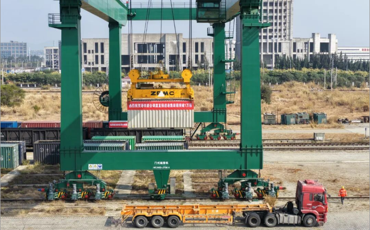 在各级政府部门和上级集团的统筹推进下,福港集箱协同铁路部门持续优化作业流程,通过强化铁路场站与港内作业的无缝衔接,系统优化列车到发、装卸交接及堆场调度等关键环节,有效提升集装箱从铁路场站到港内作业区的整体转运效率。“港站一体化”运营模式实施以来,切实帮助进出口企业降本增效,也为区域物流体系优化提供了有力支撑。