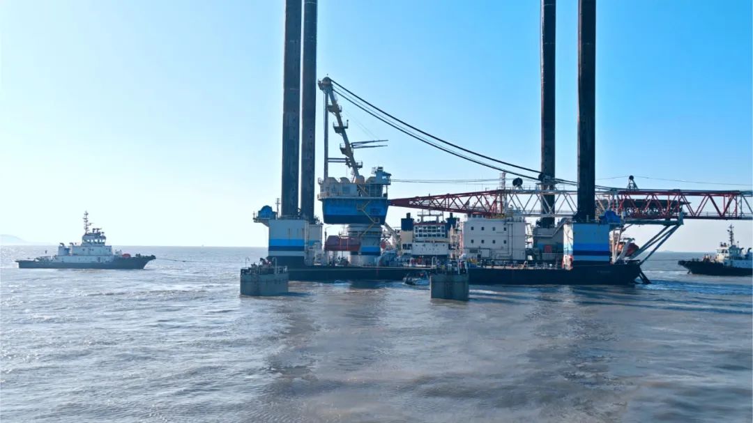 上午9:10分,“榕拖12”和主拖船“稳进拖2”共同拖带4小时20分钟,将无动力海上风电平台“国电投003”从草屿锚地拖至江阴白屿东锚地。
