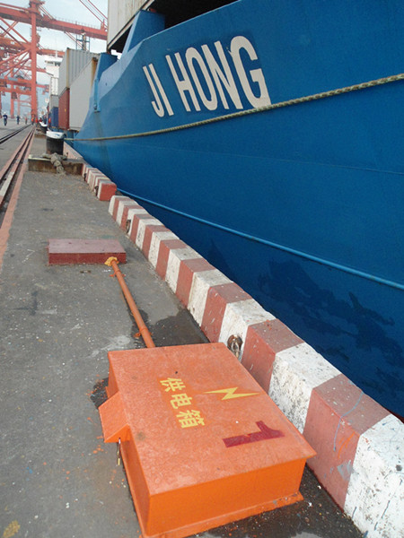 12月初,福州青州集装箱码头前沿动力箱项目竣工。该项目是青州码头为响应国家节能减排号召,秉承五星理念,为在泊船舶提供岸电服务而实施的;先期投入4万多元,在码头前沿20米、100米处试点设立2个动力箱,每个动力箱可供50千瓦以下船舶船上照明、生活用电。