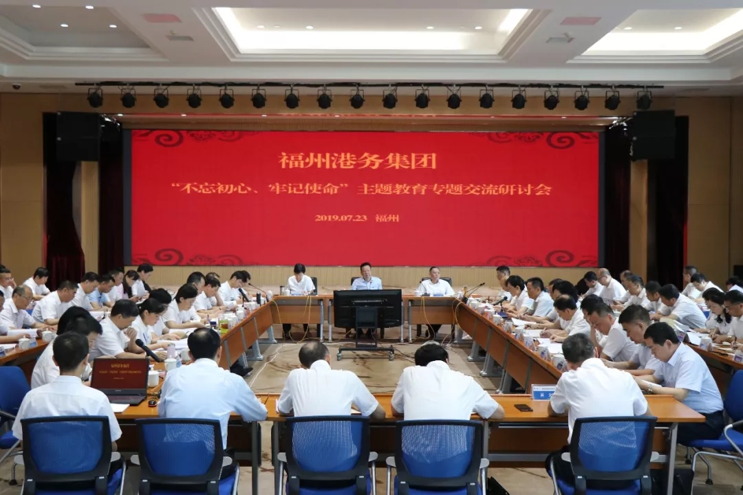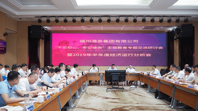 7月23日上午,福州港务集团召开“不忘初心、牢记使命”主题教育专题交流研讨会暨2019年半年度经济运行分析会,集团领导、集团管的干部90人参加会议。