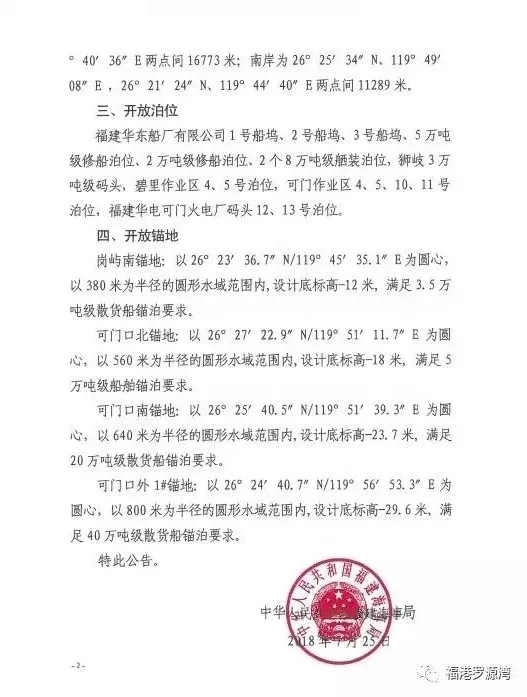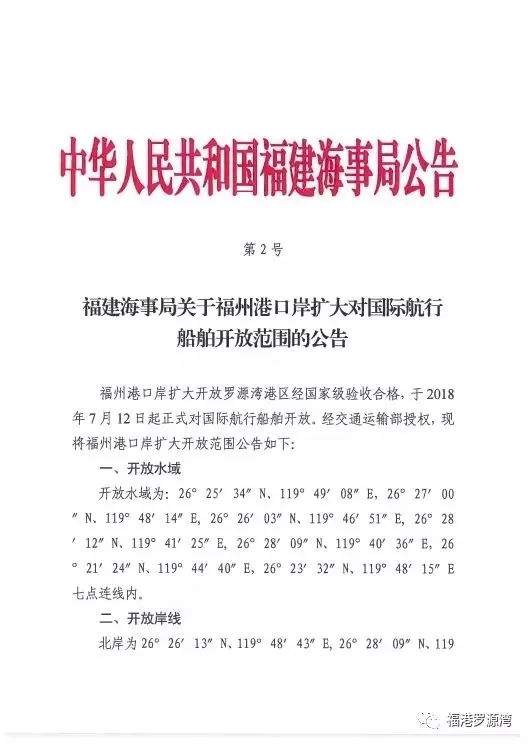 日前,《福建海事局关于福州港口岸扩大对国际航行船舶开放范围的公告》对外发布,集团所属福港罗源湾狮岐3万吨级码头、碧里作业区4、5#泊位及可门作业区4、5、10、11#泊位等正式对国际航行船舶开放。口岸扩大开放能进一步扩大港口经济效益,增强口岸活力。