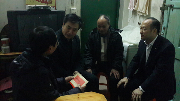 1月15日上午,省政府国资委党委委员、政治部主任孔繁军一行在福建交通集团黄循铀副总经理、港务集团黄长周书记的陪同下,到集团所属福建省砂石出口有限公司困难党员陈学榕家中走访慰问。孔主任亲切询问,嘘寒问暖,再三叮嘱要有战胜困难的信心与决心,并送上慰问金及节日的祝福和温暖。困难党员陈学榕十分感谢领导的关心,并表示将更好地工作回报组织。