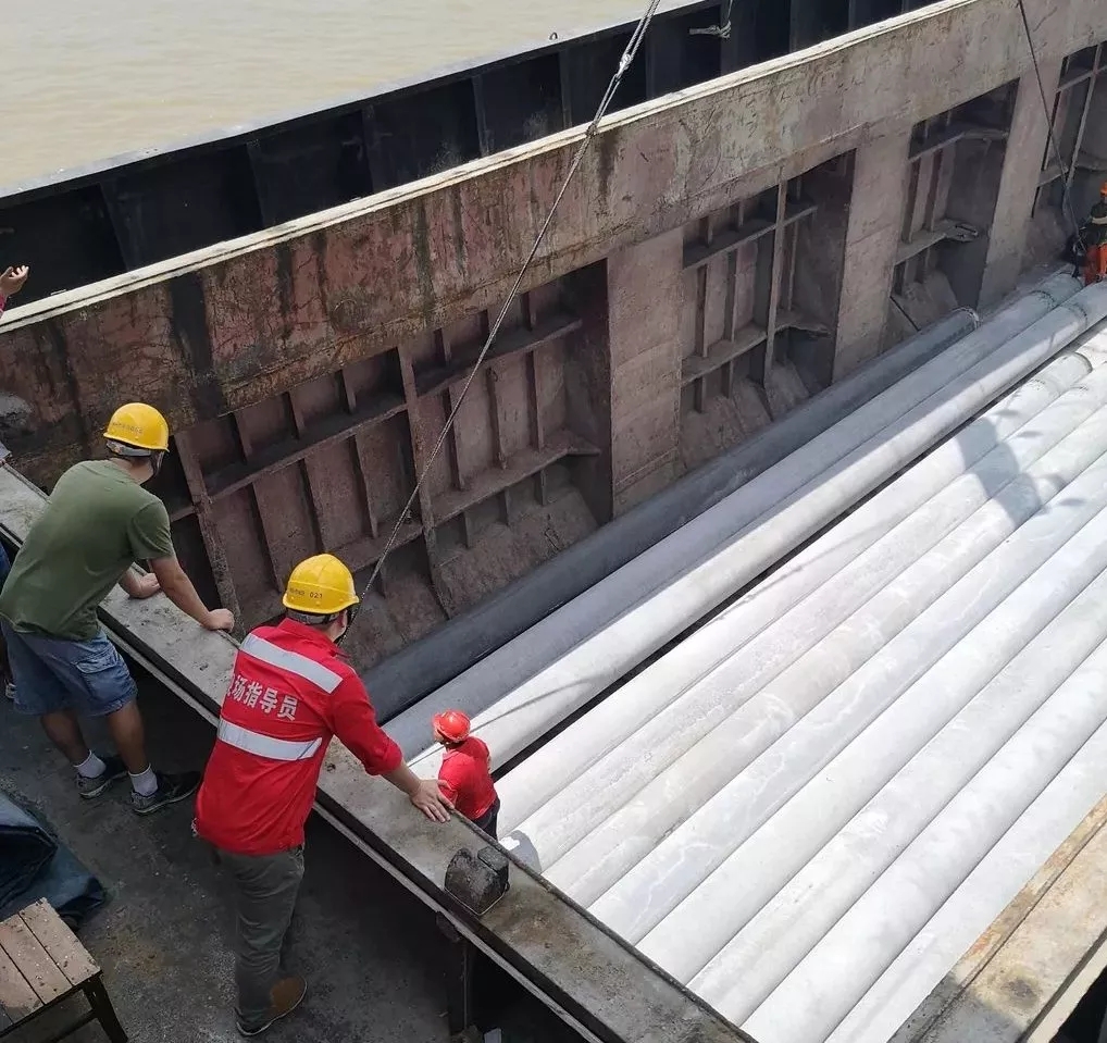 为保障生产安全,作业区提前做好装卸工人、操作司机等相关人员的装卸工艺培训。在装船作业时,作业区领导高度重视,亲自到现场指挥装船作业,对装船时货物质量的进行严格把关,对于装卸工人的站位、挂钩、及操作司机在每个关口需要的注意事项进行强调,同时对现场作业过程中发现的安全隐患及时提出整改,此次管桩装船共238件、用时11小时,在安全的前提下保证效率,确保货物无破损,得到客户的肯定。