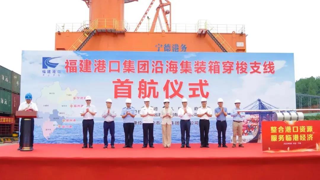 9月27日上午,福州港务集团所属福建东方海运“东方吉”集装箱货轮满载322TEU从宁德三都澳港区漳湾作业区7#泊位启航,标志着福建沿海集装箱穿梭支线(宁德-福州-泉州-厦门)正式开通。宁德市副市长杨方、福建港口集团副总经理陈乐章出席首航仪式。